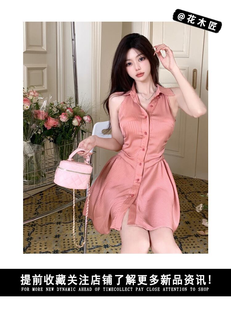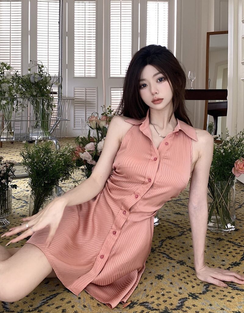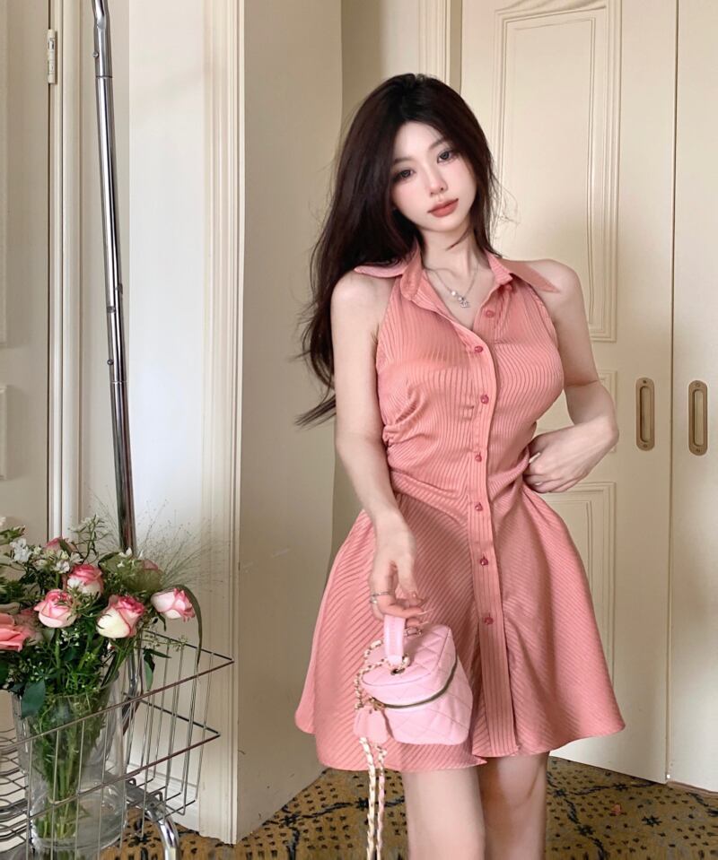 カラーノースリーブドレス サマープリーツウェスト薄手Aラインスカート 夏物 10/5 秋冬 オータム ウインター ナチュラル mi4672526253738