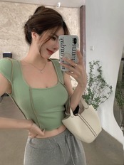 グリーンショートTシャツ サマーラインスリムトップス 夏物 10/5 秋冬 オータム ウインター ナチュラル mi4654760235764