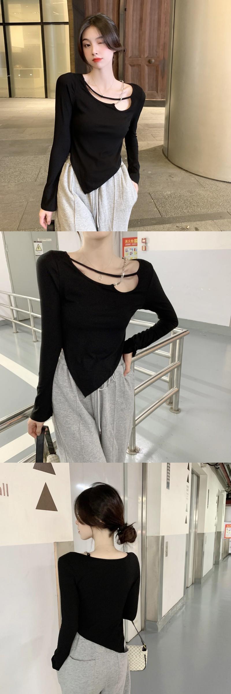 チェーン Tシャツ シャツ オータムスリムフィットブラック ロング 秋物 10/5 秋冬 オータム ウインター ナチュラル mi462054470948
