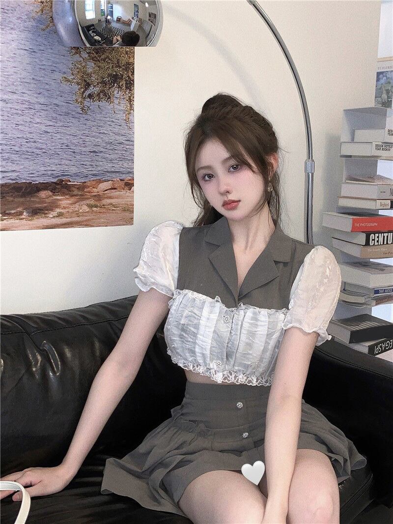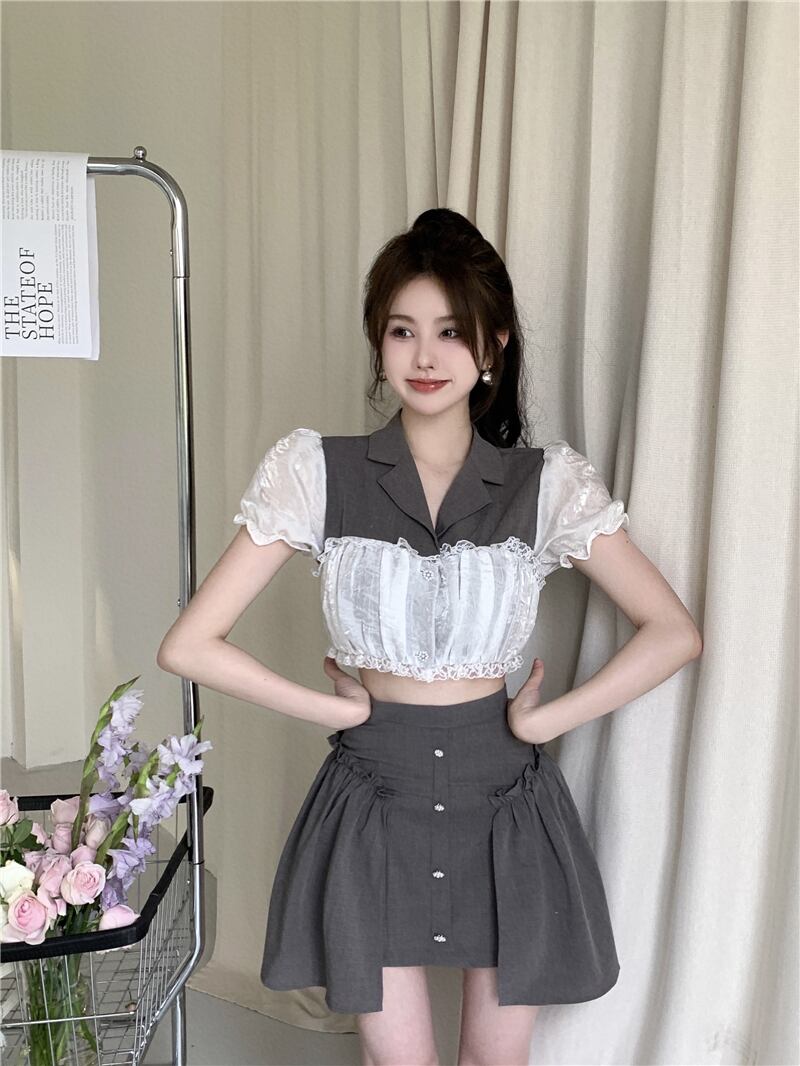 スタイルカラーショートシャツ サマーレーススリムトップス 大人ガーリー スウィート キュート カジュアル 夏物 ステッチ 10/5 秋冬 オータム ウインター ナチュラル mi4672035403799