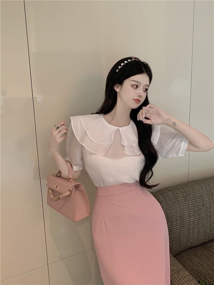 ホワイトカラーシャツ サマースリーブトップス 夏物 10/5 秋冬 オータム ウインター ナチュラル mi4692097070975
