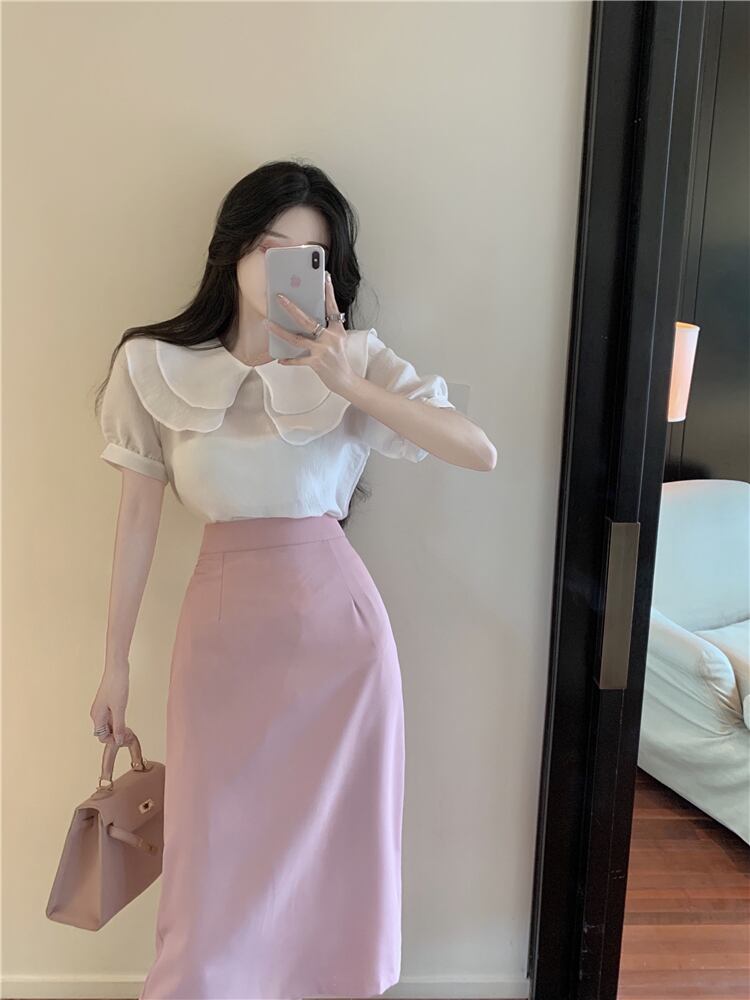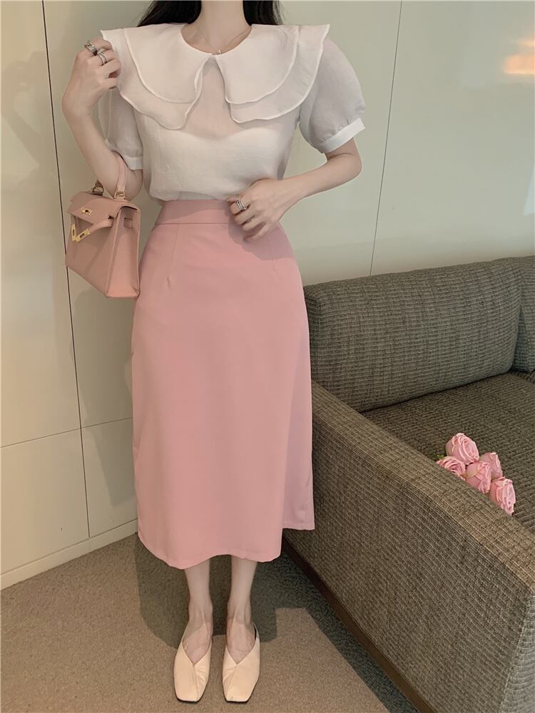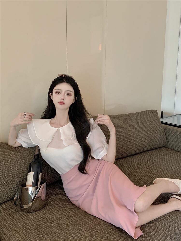 色:ホワイトトップシングルピース,ピンクスカートワンピース