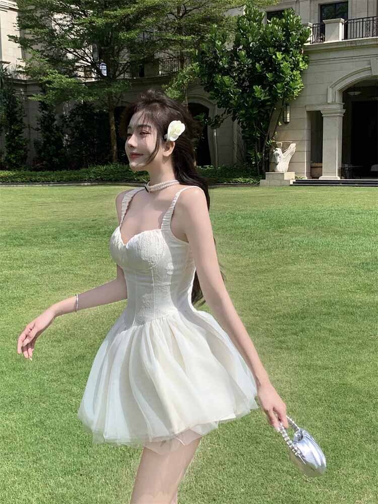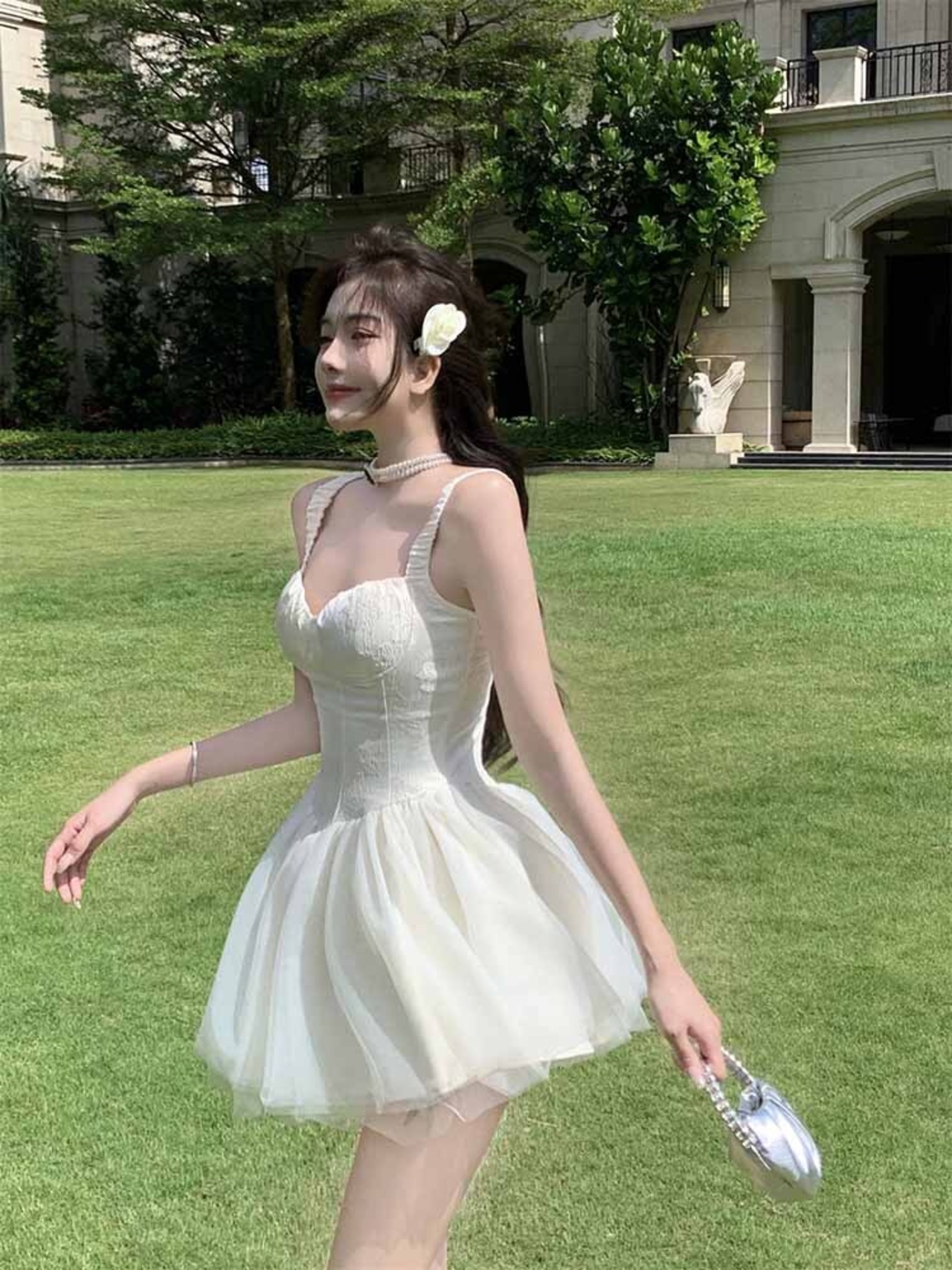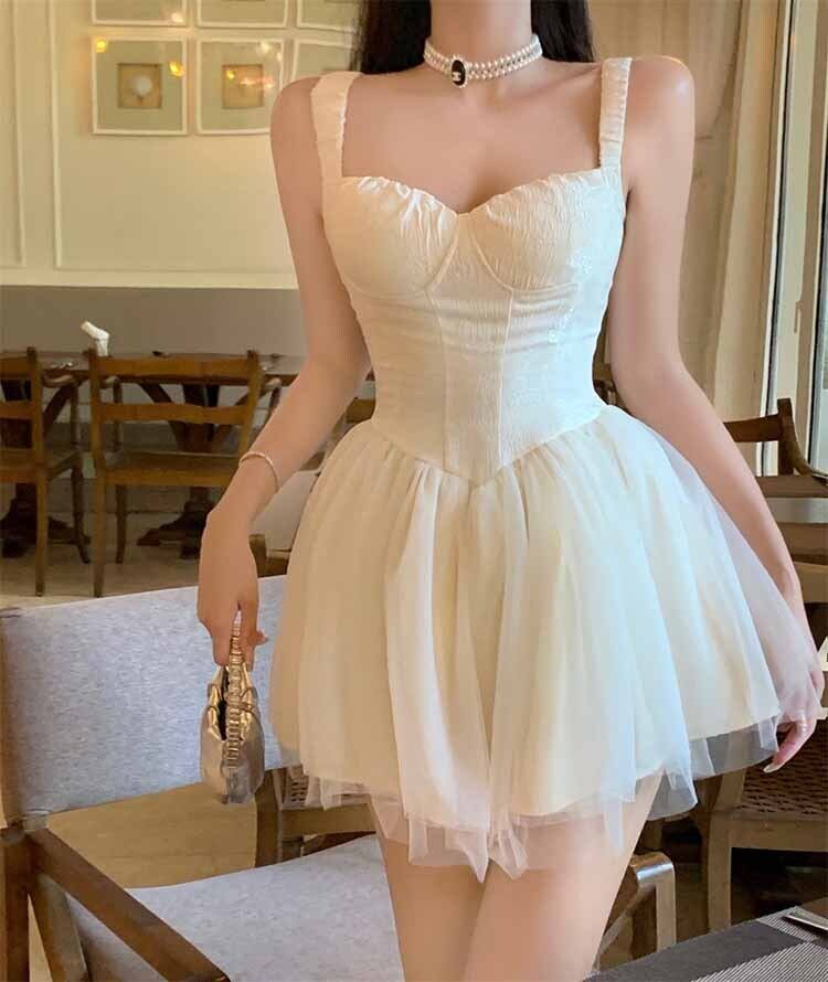 Vネックドレス サマーウェストメッシュスカート ふわふわ 夏物 10/5 秋冬 オータム ウインター ナチュラル mi4682622993929