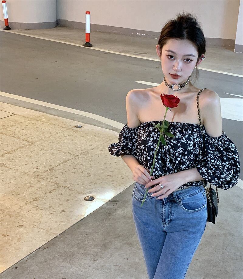 スタンダードフローラルシャツ サマースリーブショートトップス レトロ 夏物 花柄 10/5 秋冬 オータム ウインター ナチュラル mi4672192636913