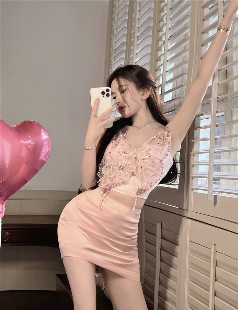 スタイルButterflyデザイン サマースリムショートトップス レッド 刺繍 大人ガーリー スウィート キュート カジュアル 夏物 10/5 秋冬 オータム ウインター ナチュラル mi4648555735616