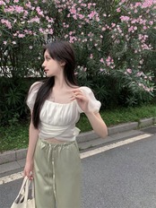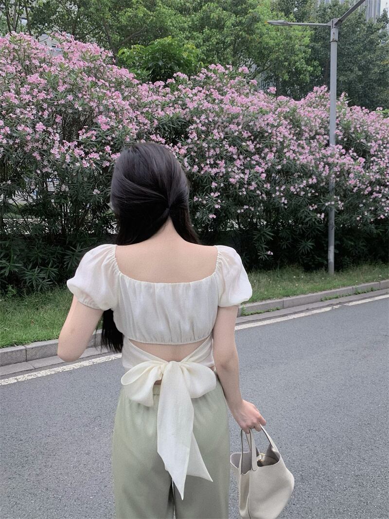 バンドスリーブシャツ サマースリムショートトップス 夏物 スクウェア 10/5 秋冬 オータム ウインター ナチュラル mi4656910246770