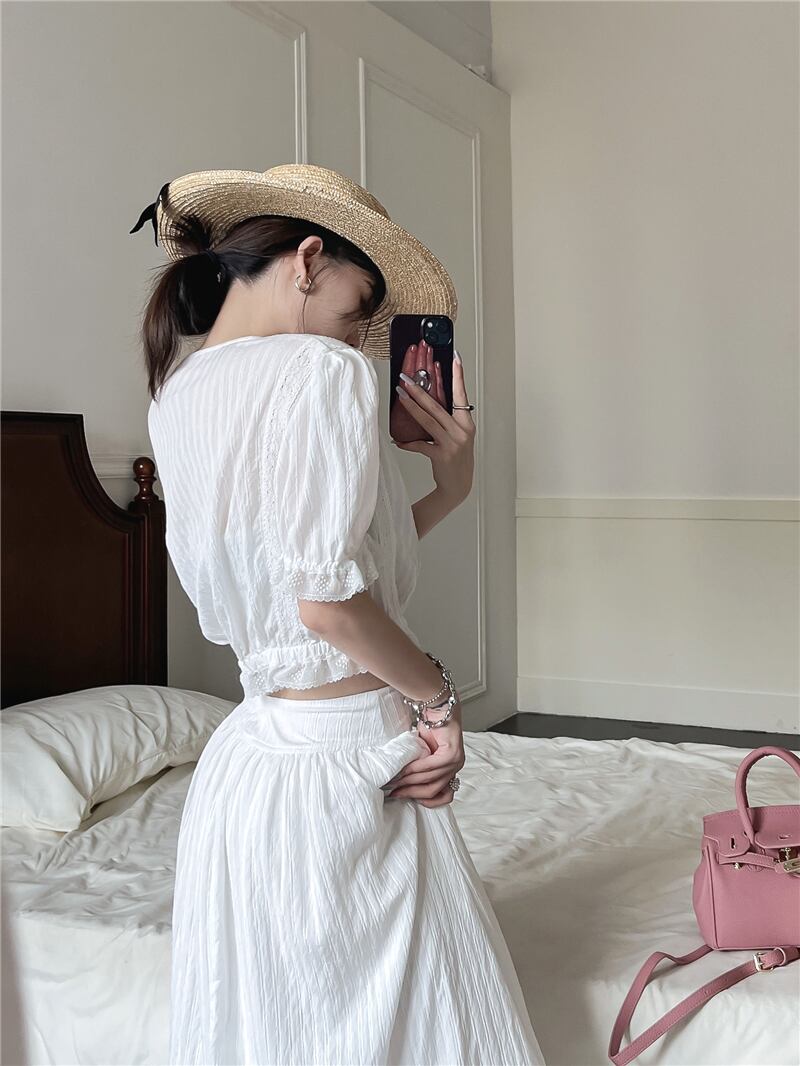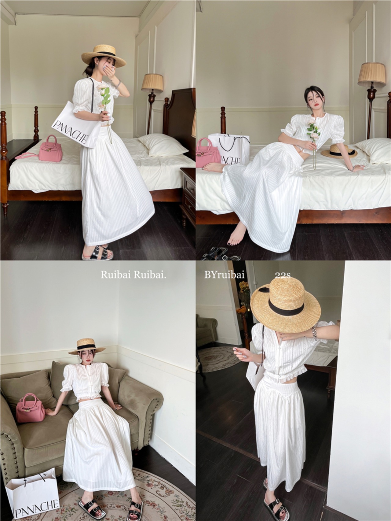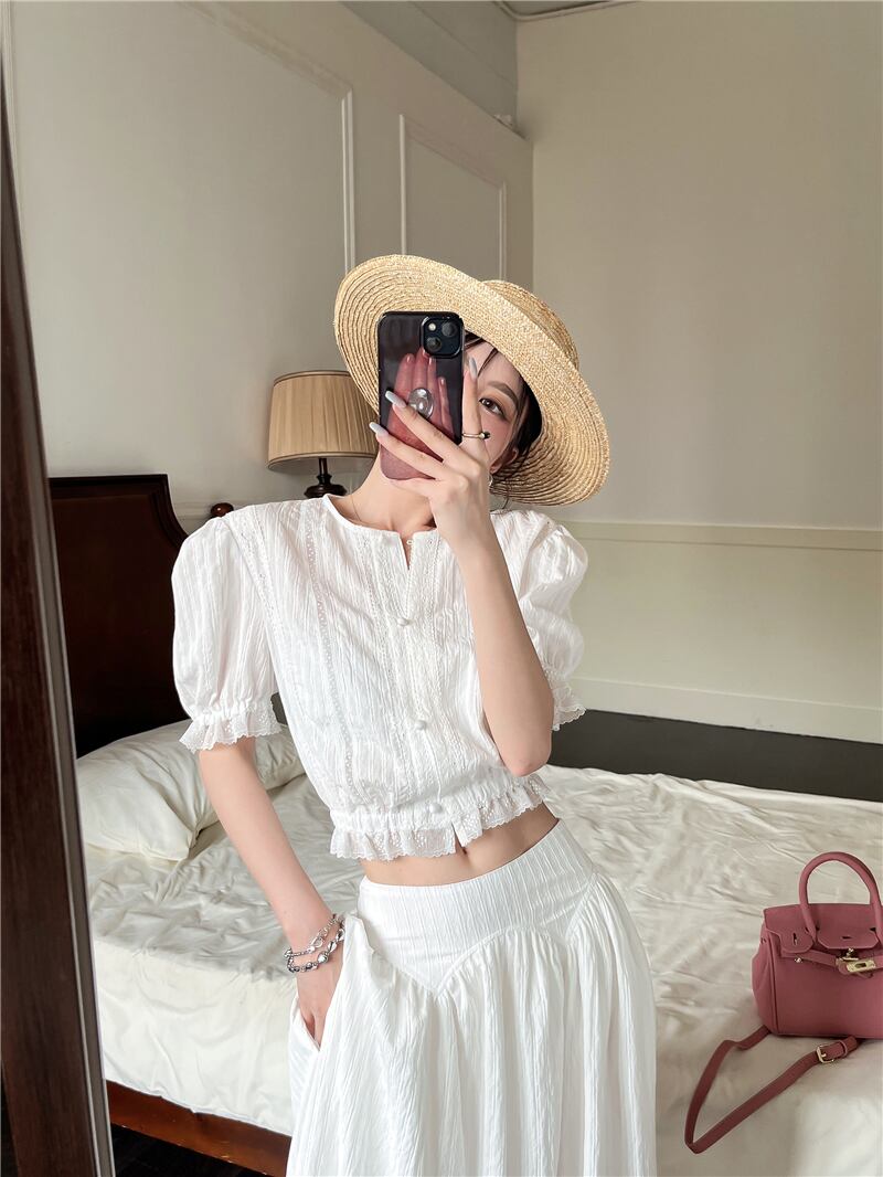 ホワイトサマースリーブシャツ スカート 夏物 ステッチ 10/5 秋冬 オータム ウインター ナチュラル mi4617316169435