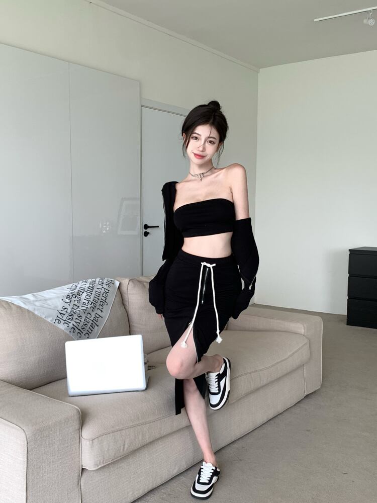 色:内側にベストのワンピース,ワンピーススリットスカート,ジャケット一枚