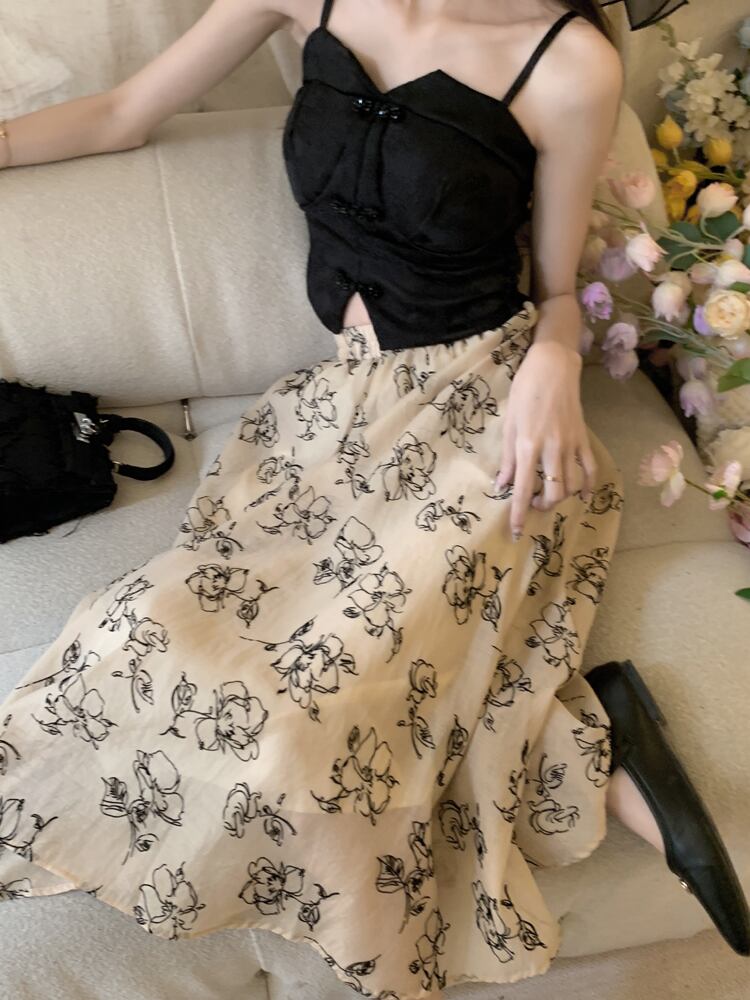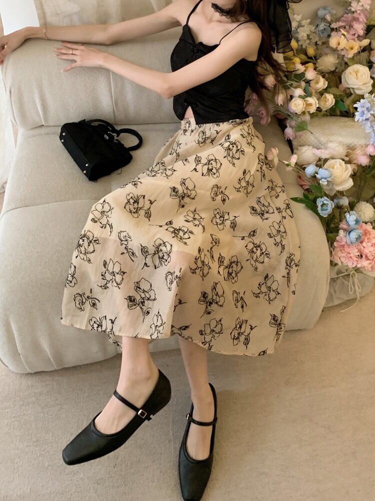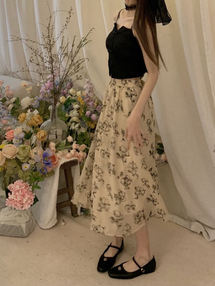 スタンダードフローラルAラインスカート サマーハイウェスト薄手 レトロ 夏物 花柄 10/5 秋冬 オータム ウインター ナチュラル mi466116772905
