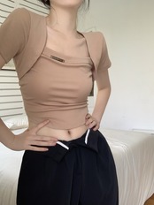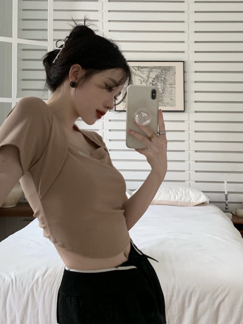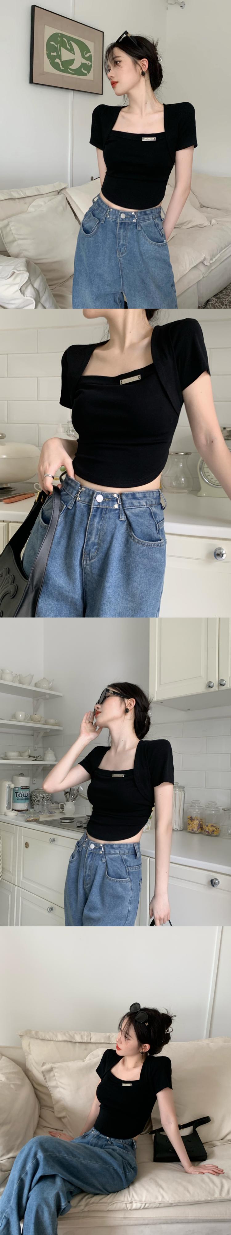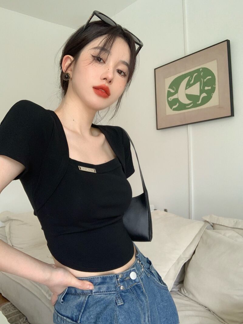 ブラックショートTシャツ サマーカラースリムフィット薄手トップス 夏物 スクウェア 10/5 秋冬 オータム ウインター ナチュラル mi4623029080019
