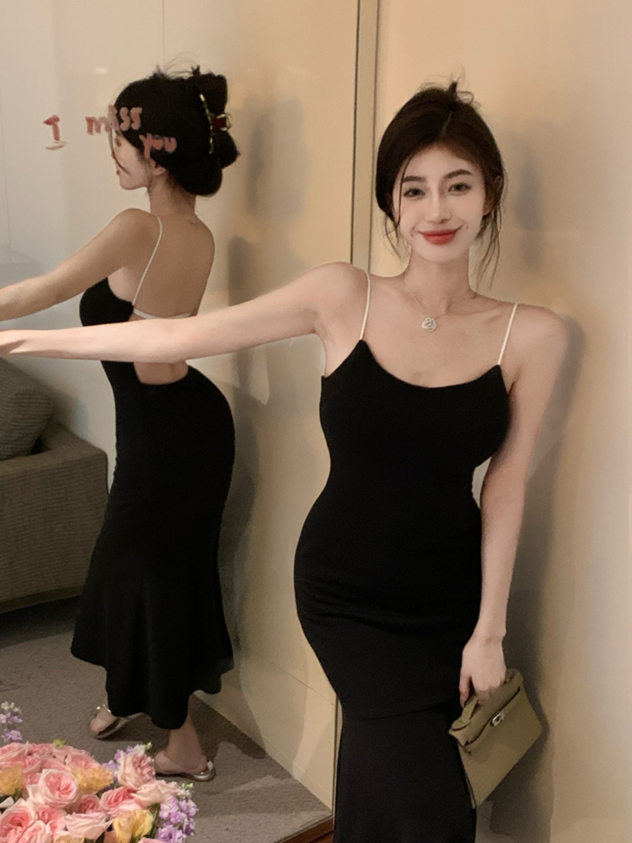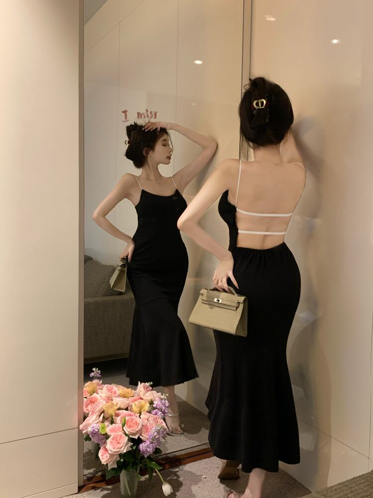 バックレスブラックドレス サマースカート ウェストロング 夏物 10/5 秋冬 オータム ウインター ナチュラル mi4682648899895