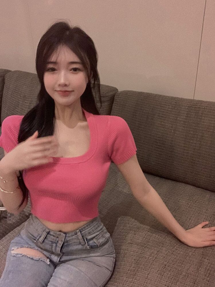 薄手ニットショートTシャツ サマーカラースリムトップス ピンク 夏物 スクウェア 10/5 秋冬 オータム ウインター ナチュラル mi469822683144