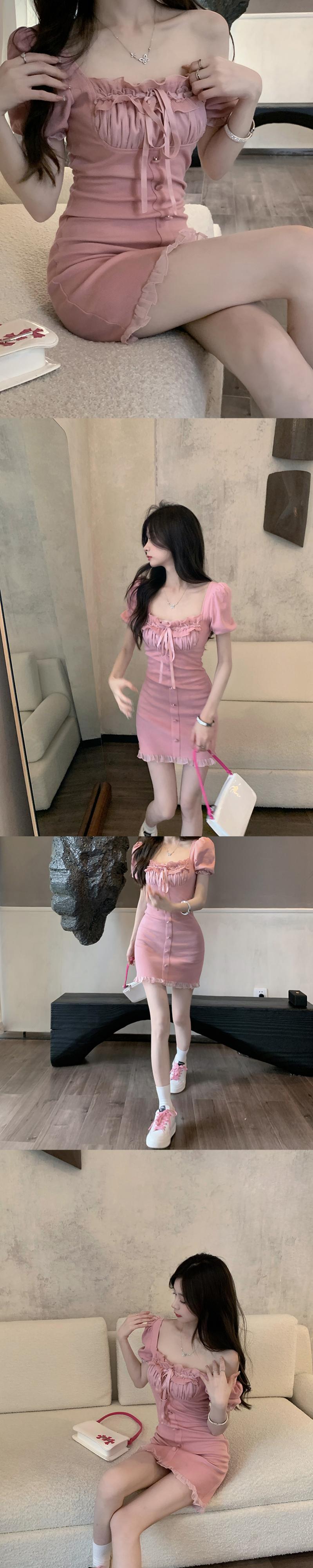 スリーブドレス サマーレースカラーウェストスカート ピンク 夏物 スクウェア ステッチ 10/5 秋冬 オータム ウインター ナチュラル mi4622415035749