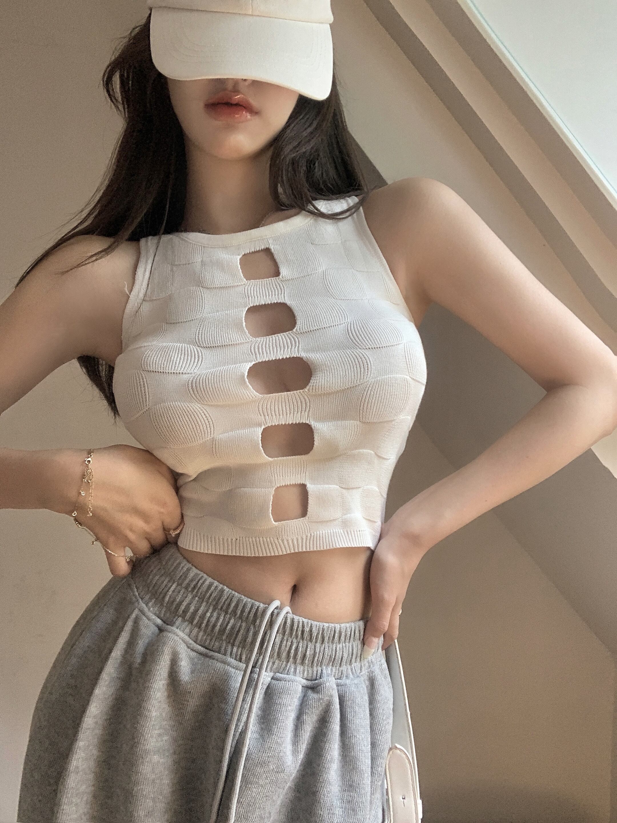 ホワイトニットサマースリムショートトップス 夏物 10/5 秋冬 オータム ウインター ナチュラル mi463185034095