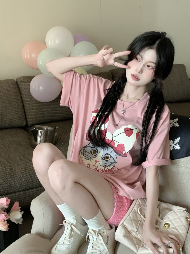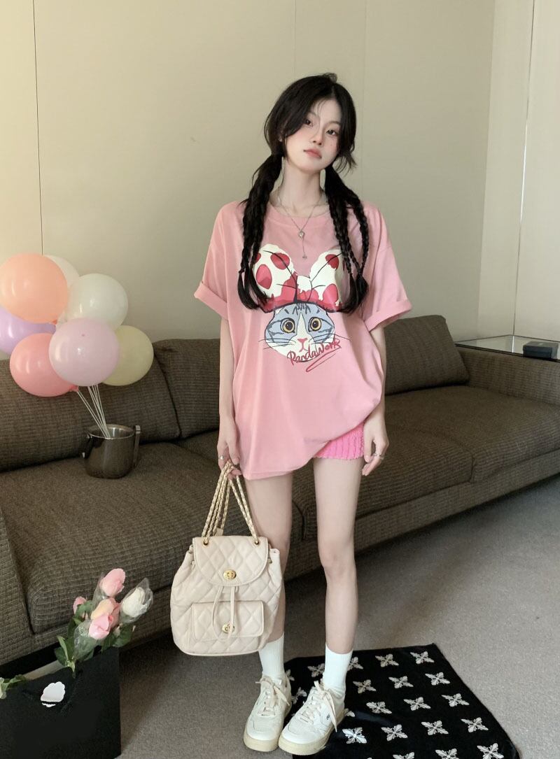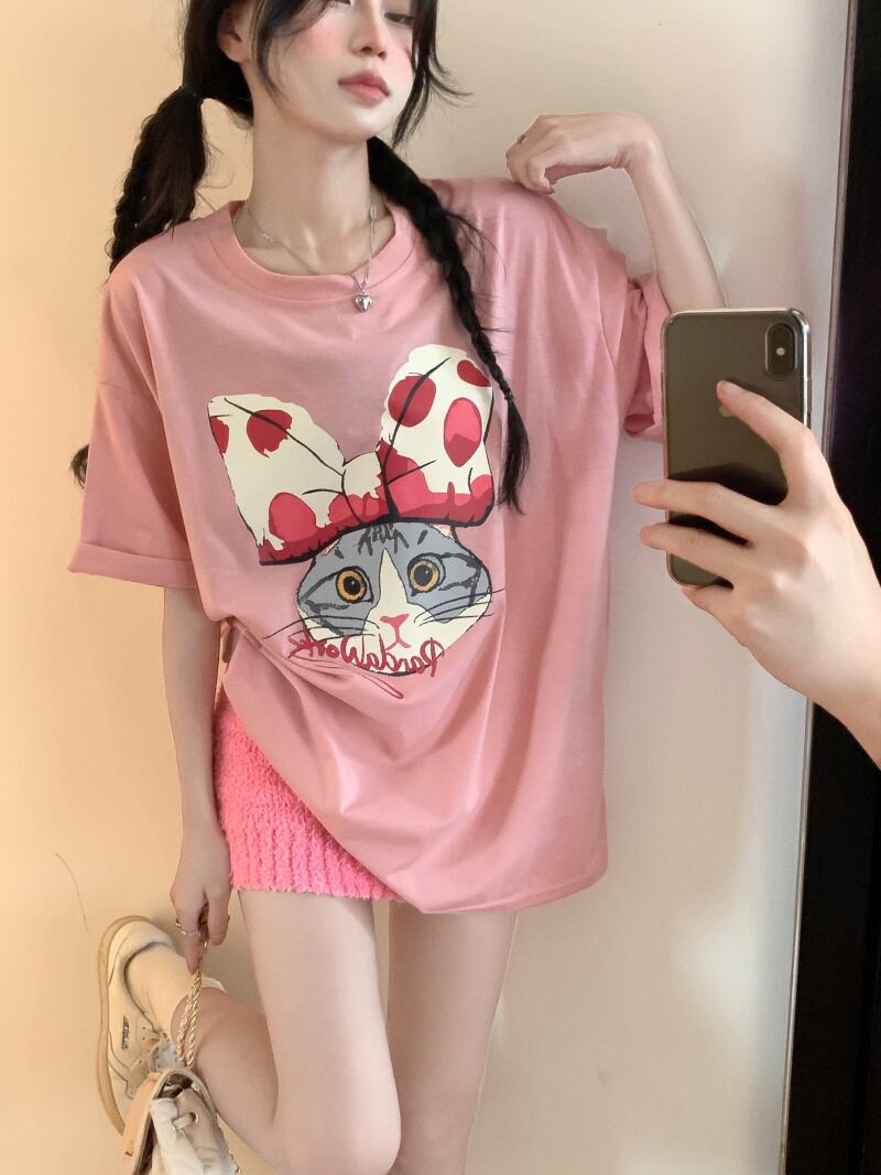プリント柄Tシャツ サマールーズトップス 夏物 10/5 秋冬 オータム ウインター ナチュラル mi4663139529912