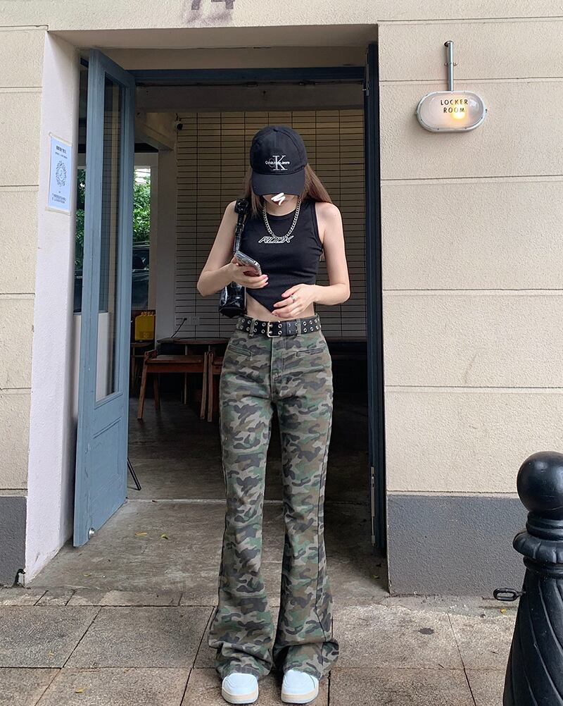 スタンダード迷彩柄ジーンズ オータムハイウェストウェスト薄手 レトロ 秋物 10/5 秋冬 オータム ウインター ナチュラル mi4673433464531