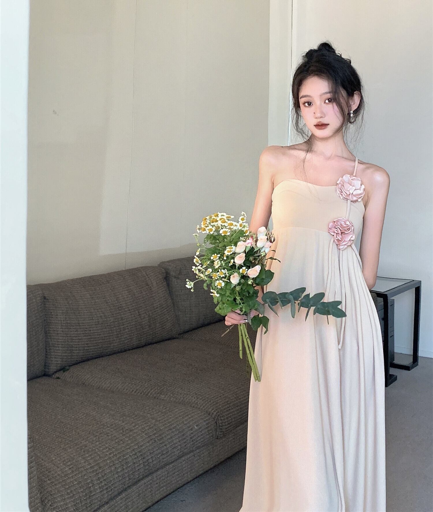 Flowerデザイン ドレス サマープリーツウェストAラインスカート 夏物 フラワーデザイン 10/5 秋冬 オータム ウインター ナチュラル mi4654250443283