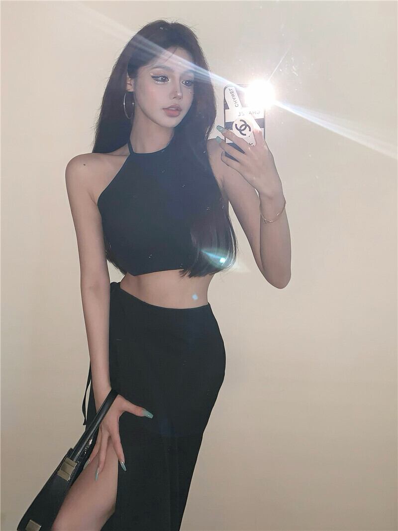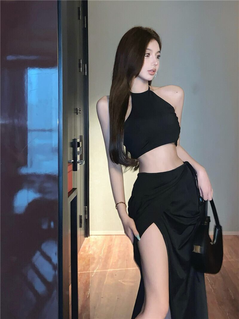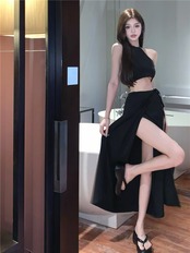 ワンピースブラックスカート サマーハイウェストウェストスリット 夏物 10/5 秋冬 オータム ウインター ナチュラル mi4671297076081