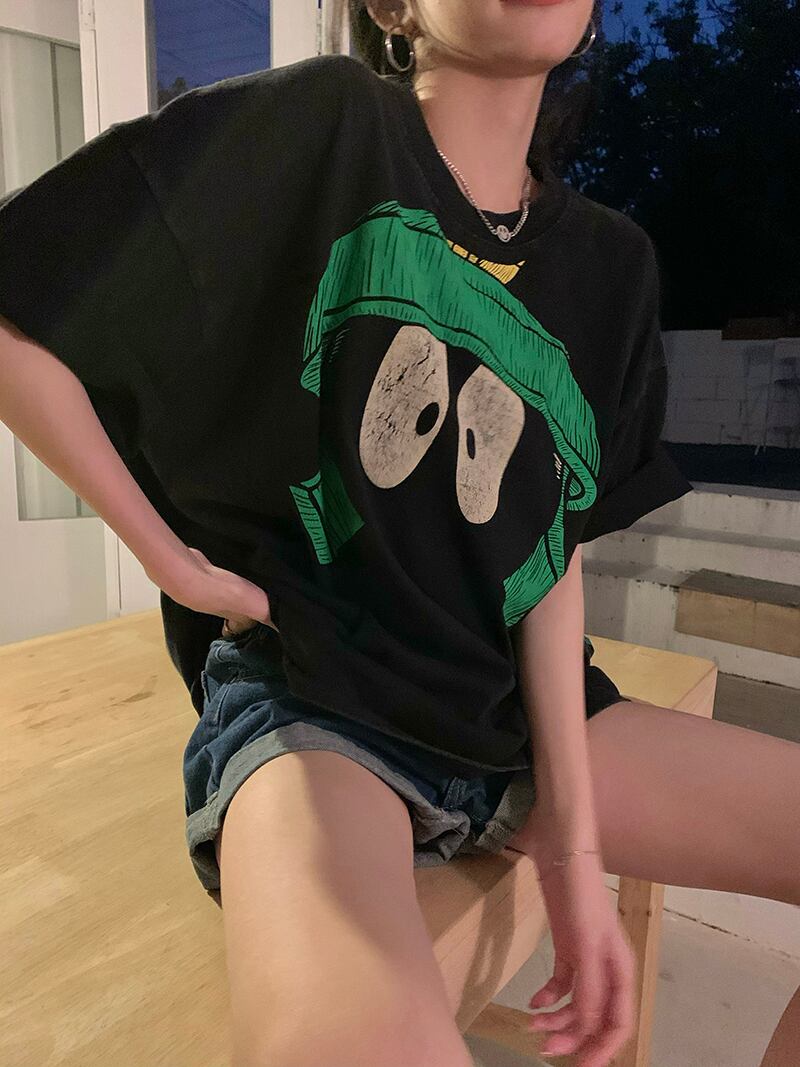 プリントブラックTシャツ サマールーズトップス 夏物 10/5 秋冬 オータム ウインター ナチュラル mi4664377300784