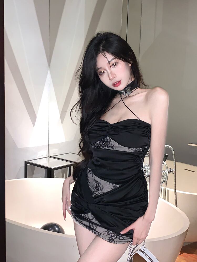レースプリーツブラックホルタードレス サマーウェストスカート 夏物 10/5 秋冬 オータム ウインター ナチュラル mi4634096556740