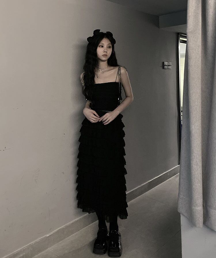 色:ワンピースレースアップベスト,ケーキスカートワンピース