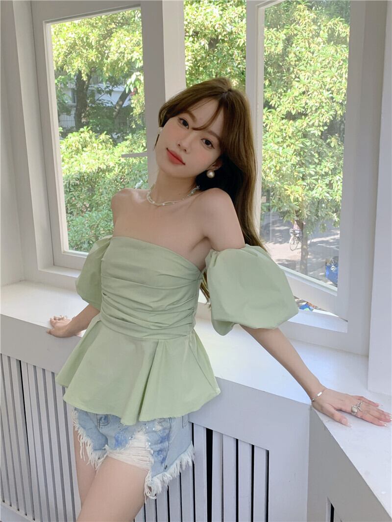 スタイルシャツ サマープリーツ薄手ショートトップス 大人ガーリー スウィート キュート カジュアル 夏物 10/5 秋冬 オータム ウインター ナチュラル mi464951610367