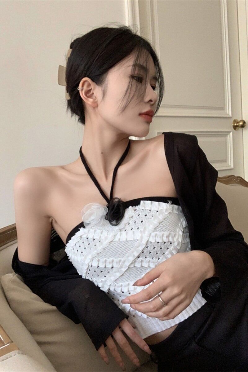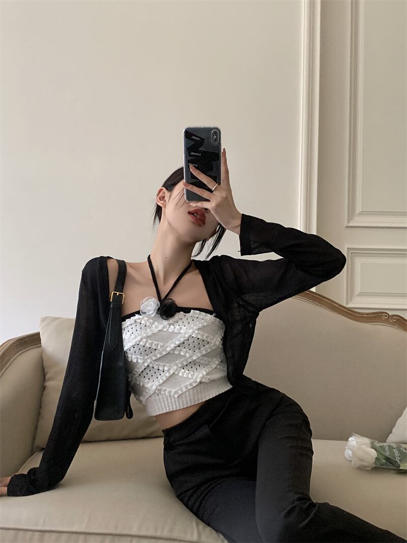 色:ホワイトスリングシングルピース,ブラックカーディガンワンピース