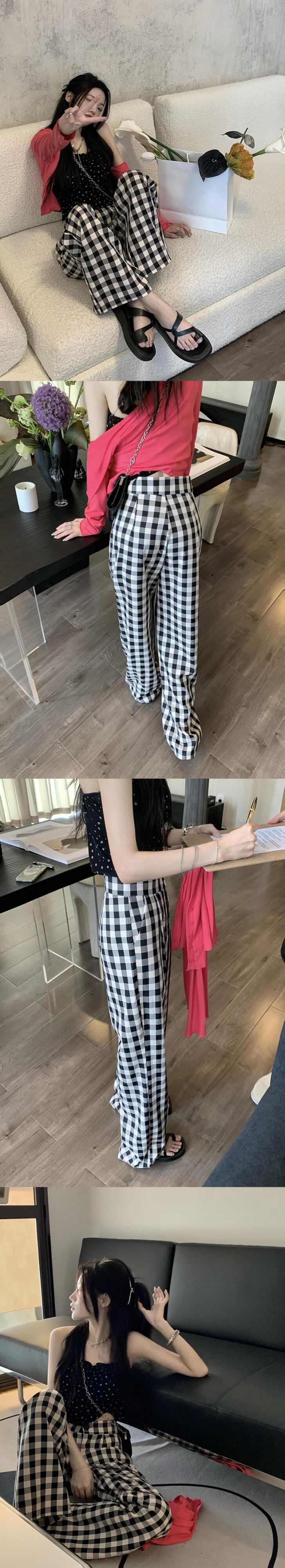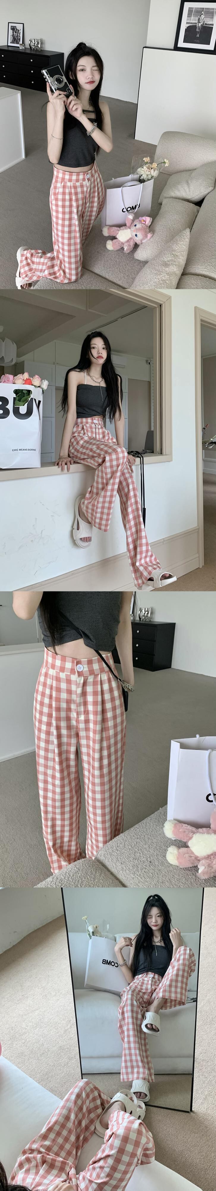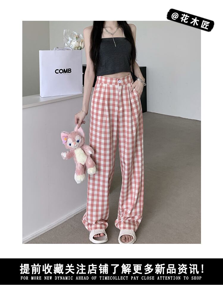 格子柄カジュアルパンツ オータムルーズハイウェストウェスト薄手 秋物 10/5 秋冬 オータム ウインター ナチュラル mi4638533649963