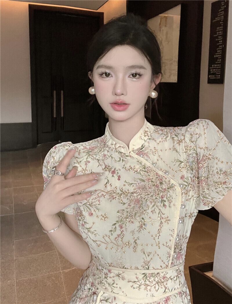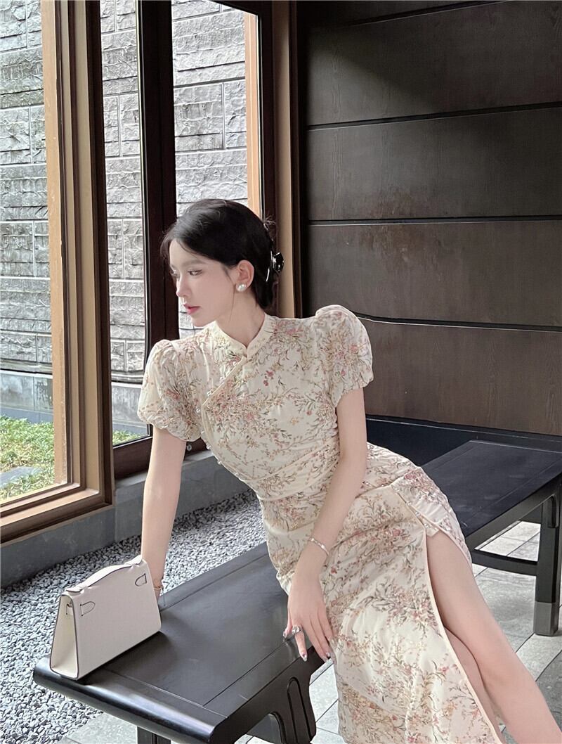 スタンダードFlowerデザイン ドレス サマーウェストスリットスカート レトロ 夏物 フラワーデザイン 10/5 秋冬 オータム ウインター ナチュラル mi4697380236316