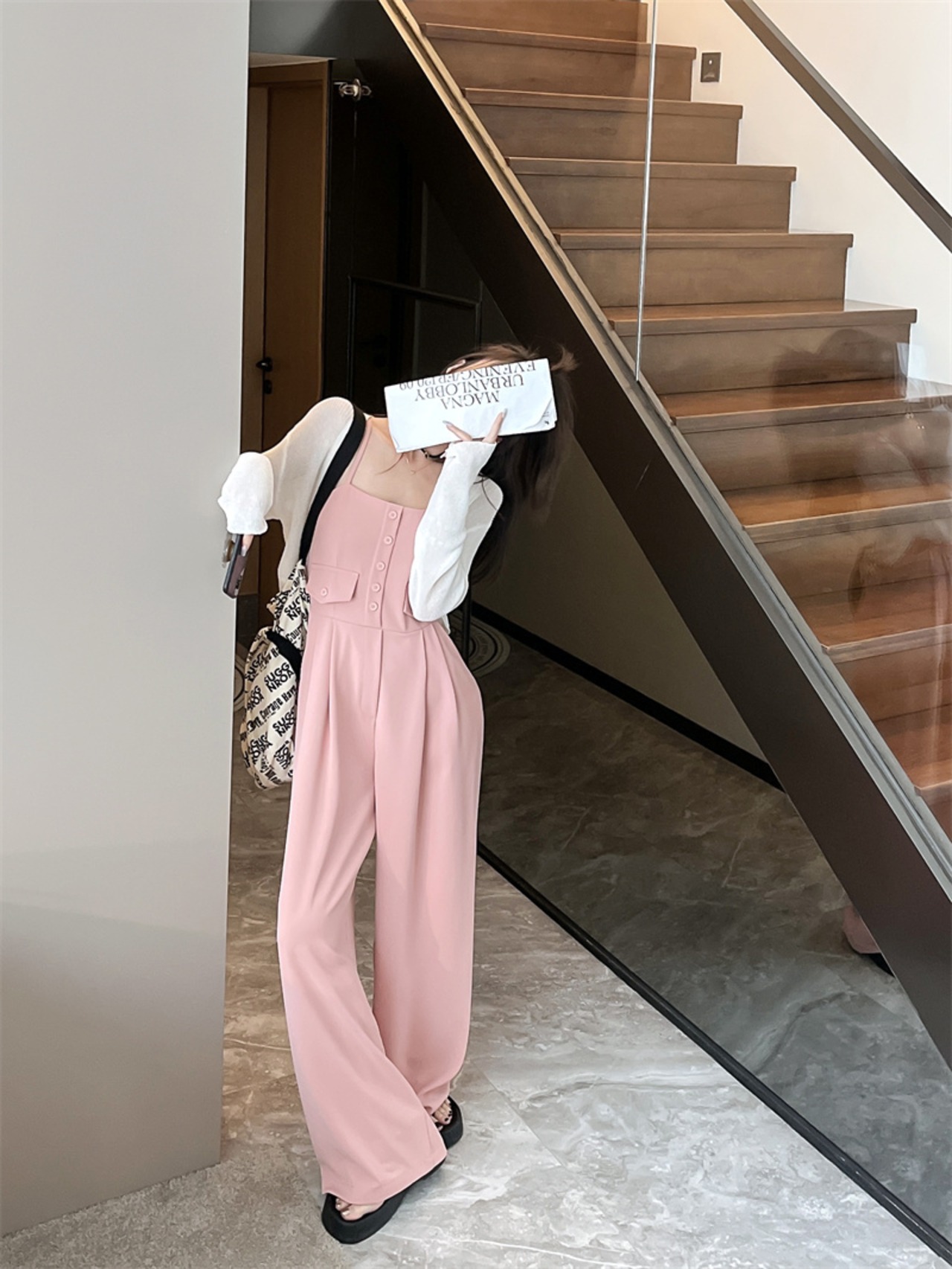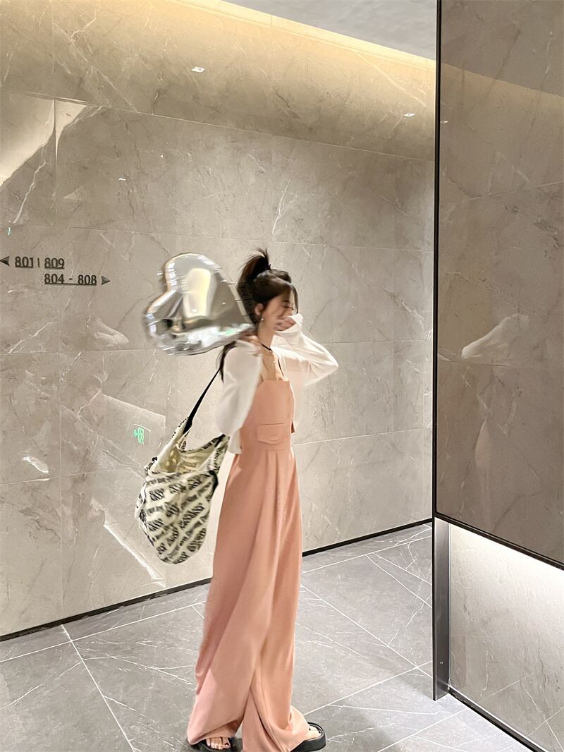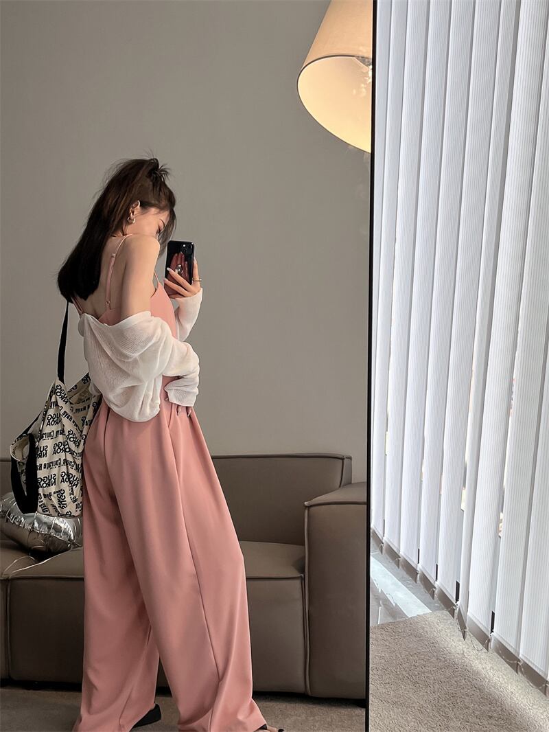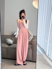 ジャンプスーツ オールインワン オータムハイウェストウェストルーズカジュアルワイドレッグパンツ ピンク 秋物 ワイドパンツ 10/5 秋冬 オータム ウインター ナチュラル mi4692199040647