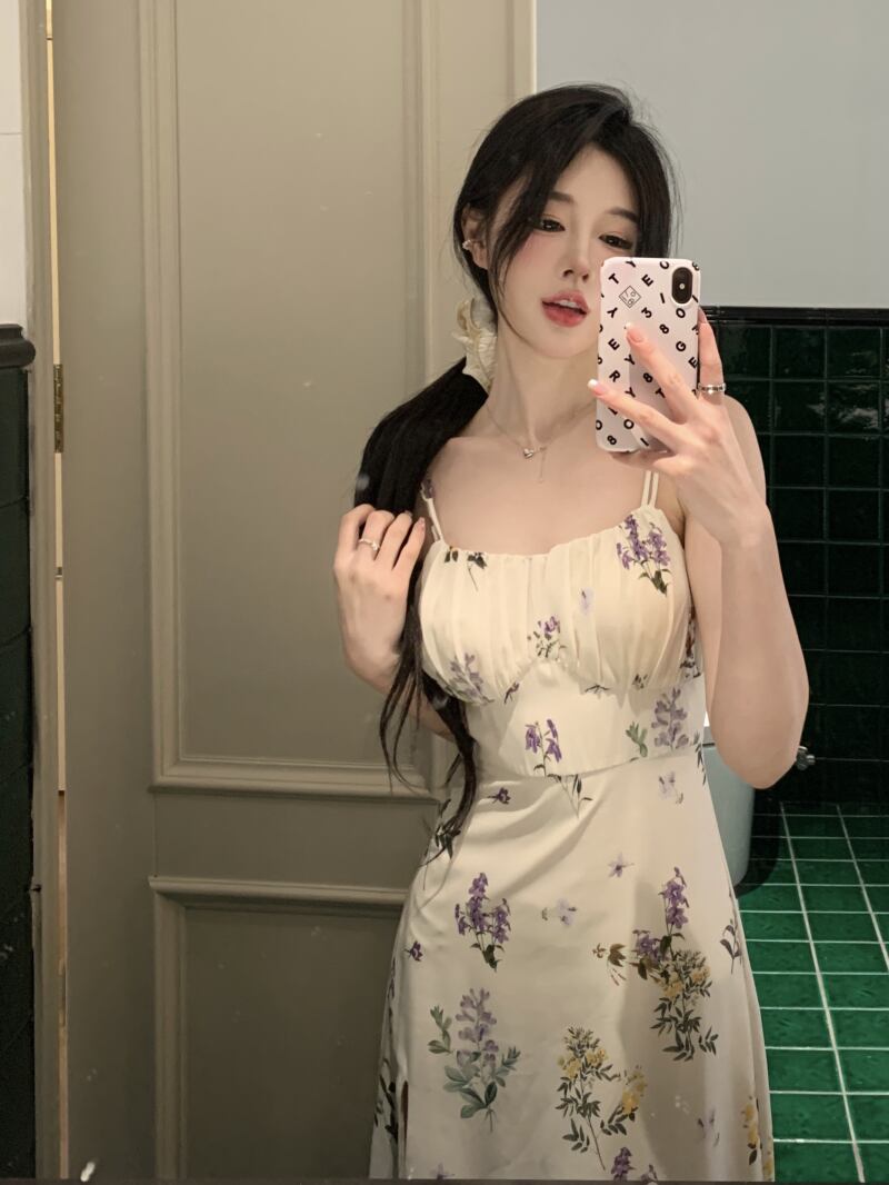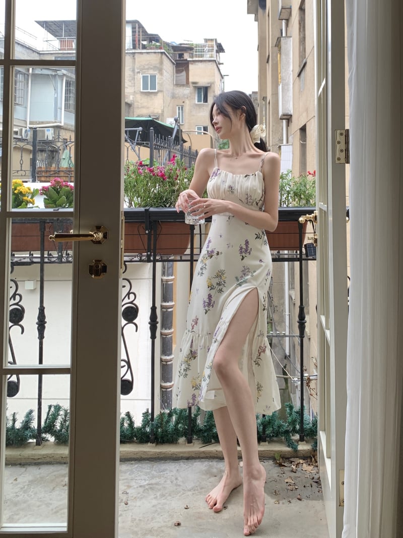フローラルドレス サマーウェストスリットAラインスカート 夏物 花柄 10/5 秋冬 オータム ウインター ナチュラル mi4614786702890
