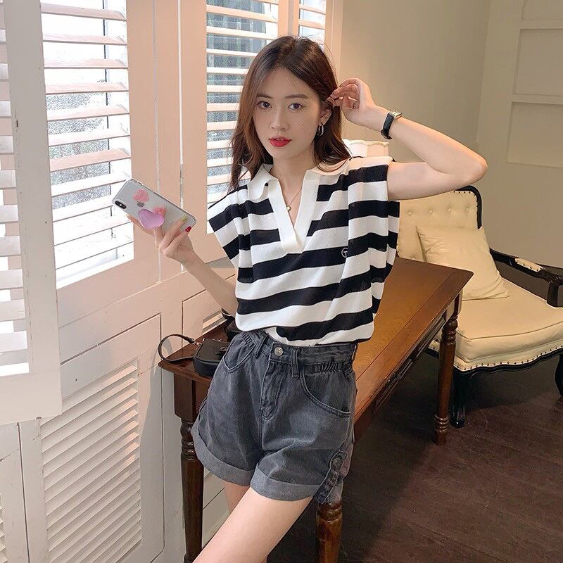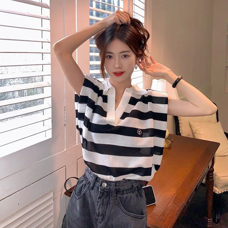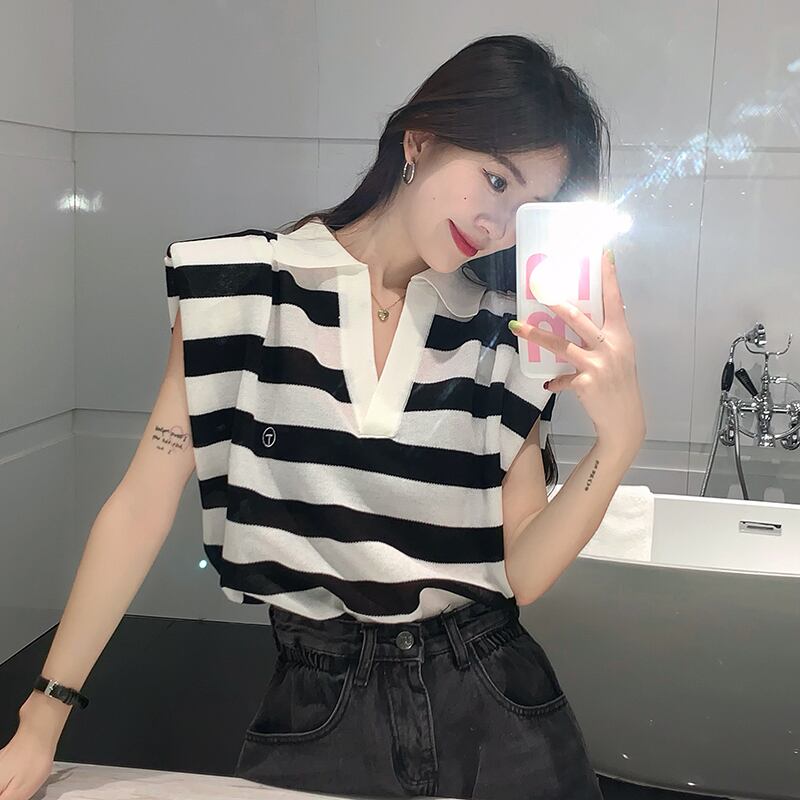 ストライプニットノースリーブTシャツ サマースタイルルーズトップス 夏物 シルク 10/5 秋冬 オータム ウインター ナチュラル mi4619904240853