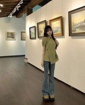 スタンダードスタイルグリーンシャツ サマーウェスト薄手トップス レトロ 夏物 10/5 秋冬 オータム ウインター ナチュラル mi4660192916078