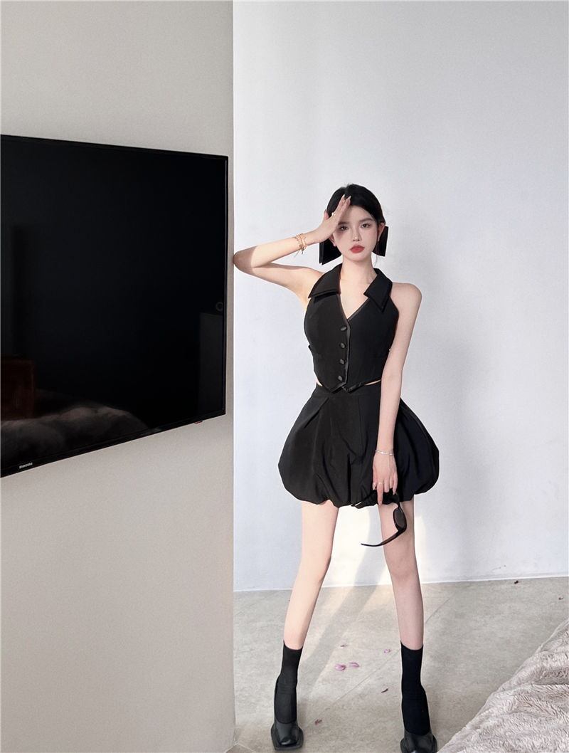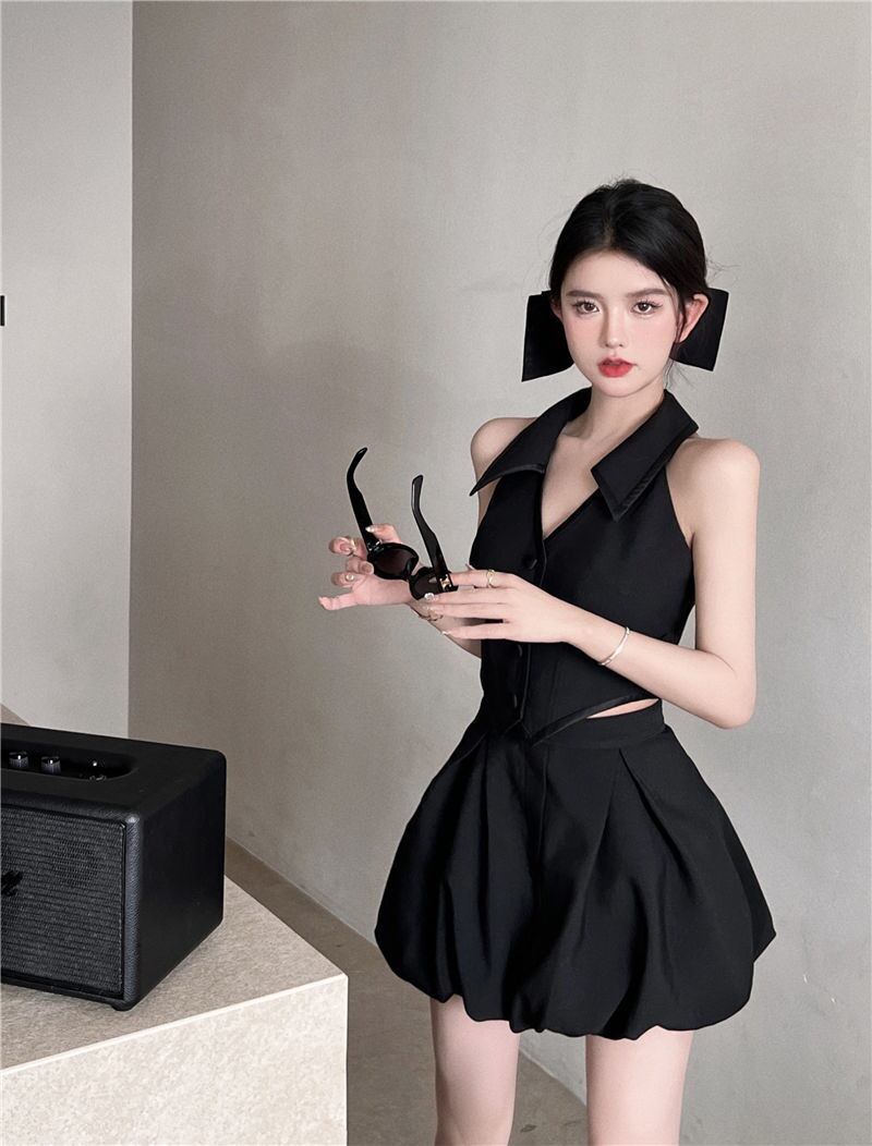ブラックサマースタイルホルタースカート 大人ガーリー スウィート キュート カジュアル 夏物 10/5 秋冬 オータム ウインター ナチュラル mi4645114444244