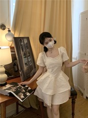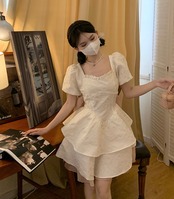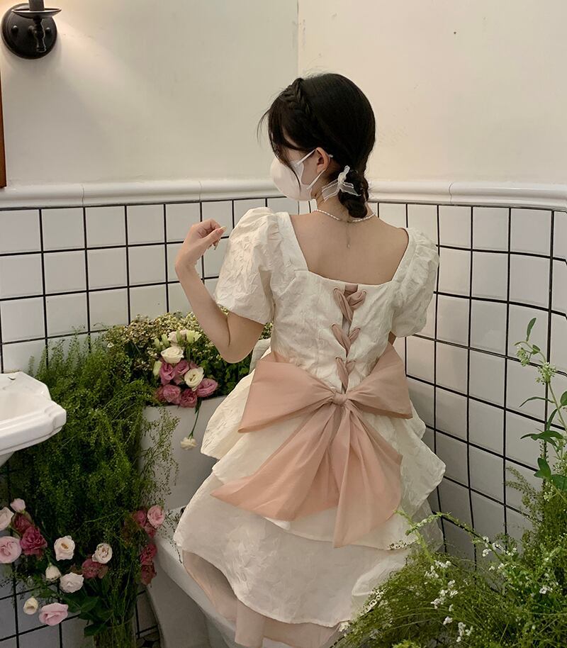 スタイルカラーリボンスリーブドレス サマーウェストスカート 大人ガーリー スウィート キュート カジュアル 夏物 10/5 秋冬 オータム ウインター ナチュラル mi4651949383811