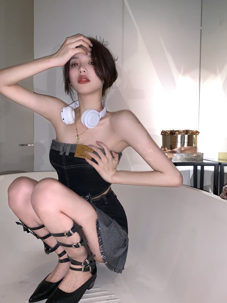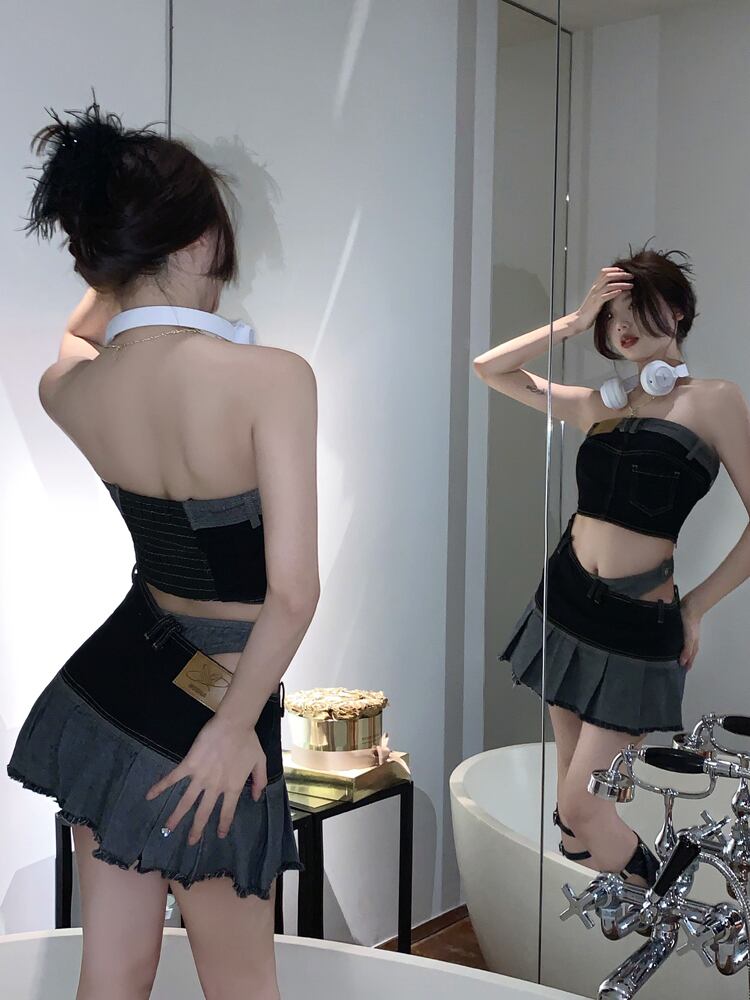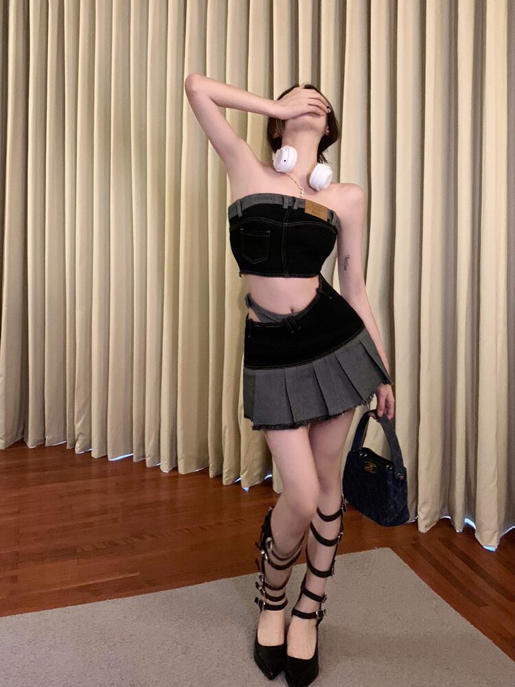 色:ブラックデニムトップス,ブラックデニムスカート