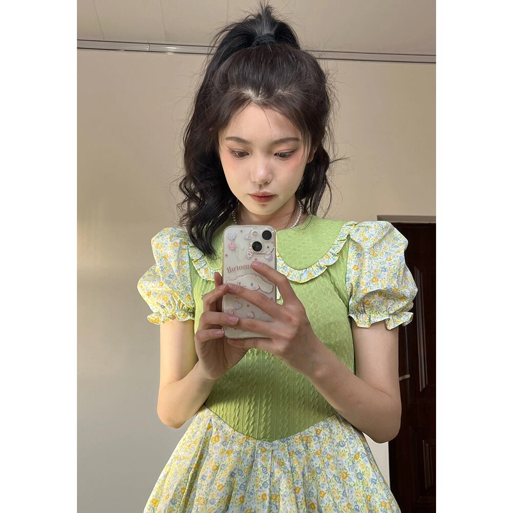 グリーンフローラルドレス サマーウェストスカート 夏物 花柄 10/5 秋冬 オータム ウインター ナチュラル mi4686339013865