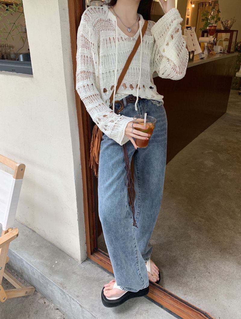 ニットセーター オータム薄手ブラウス トップス ロング 秋物 10/5 秋冬 オータム ウインター ナチュラル mi4648385904718