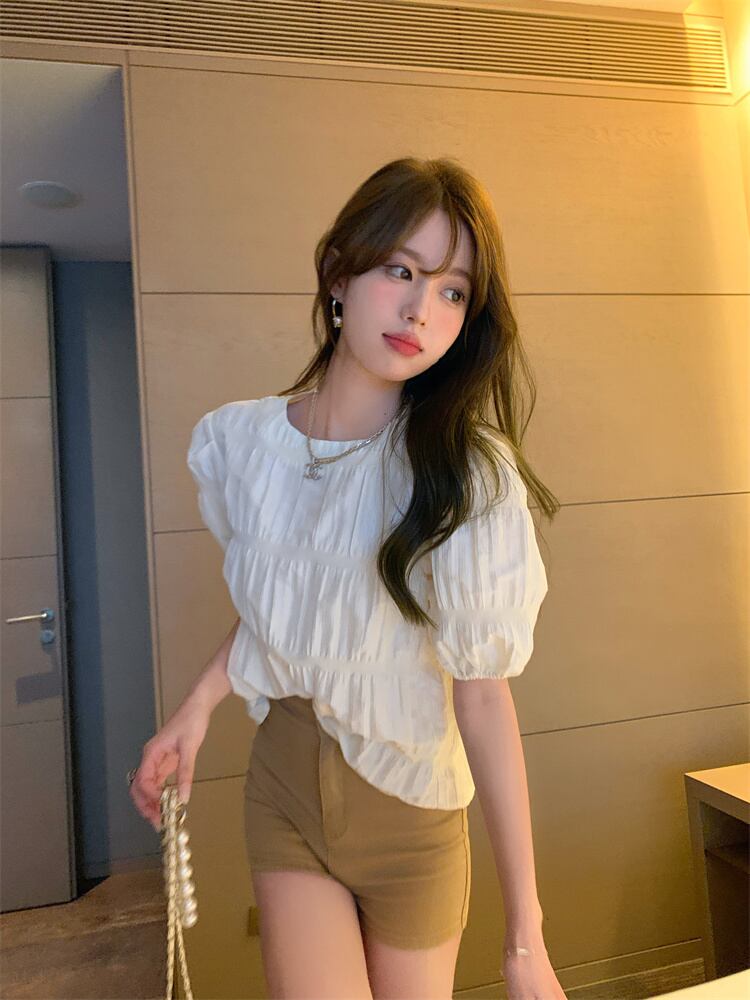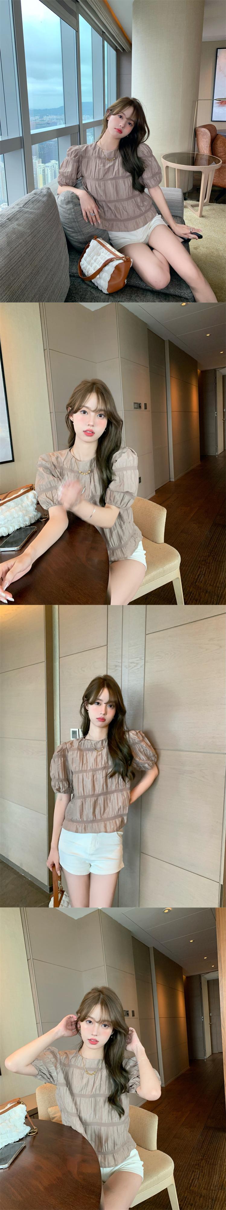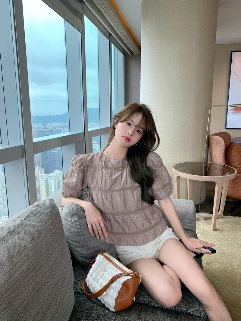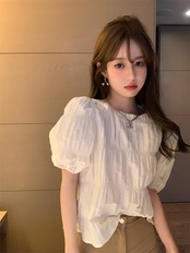 プリーツスリーブシャツ サマールーズトップス 大人ガーリー スウィート キュート カジュアル 夏物 10/5 秋冬 オータム ウインター ナチュラル mi4634004085798