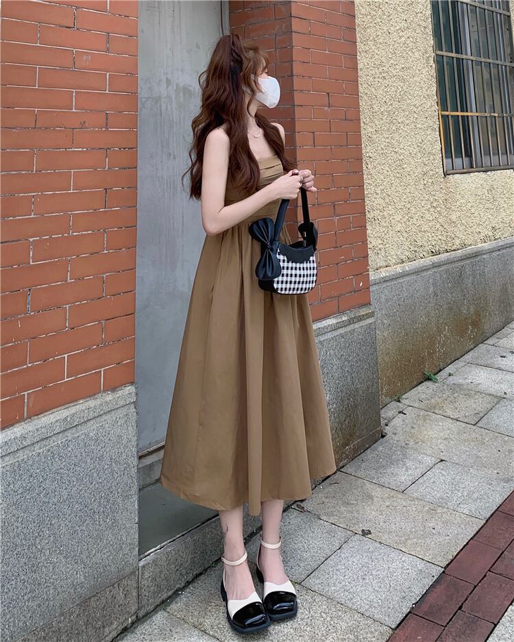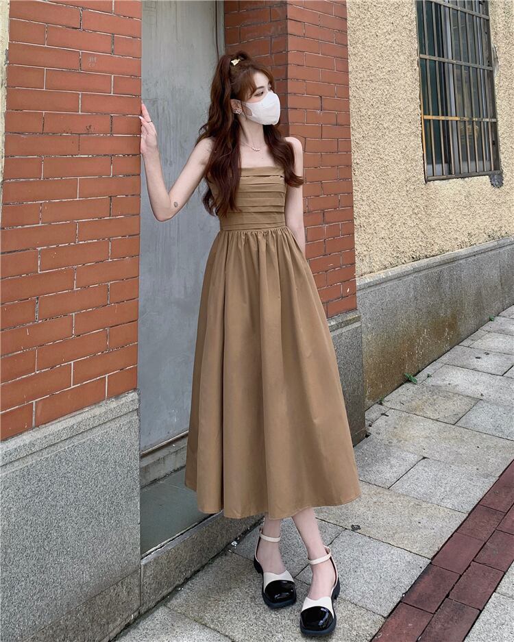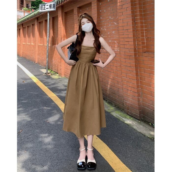 スタンダードプリーツカラードレス サマーウェストスカート レトロ 夏物 10/5 秋冬 オータム ウインター ナチュラル mi4611266471093