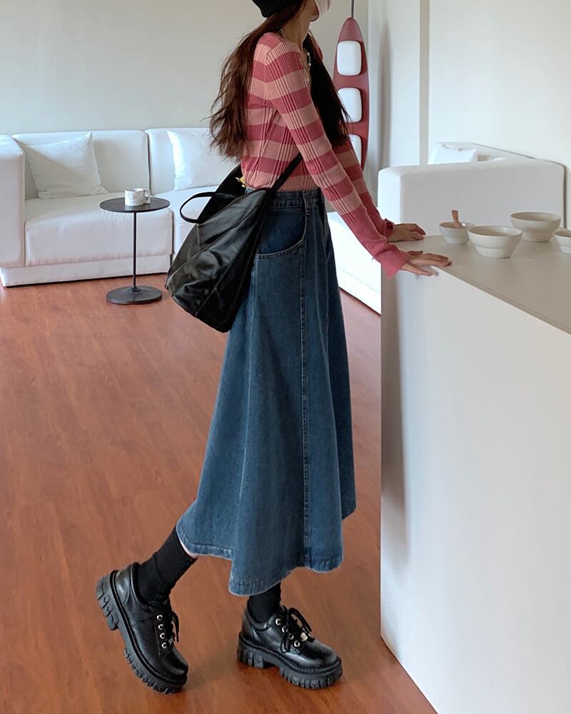 ポケットハイウェストウェストスカート サマー薄手Aライン 夏物 10/5 秋冬 オータム ウインター ナチュラル mi4641023349583