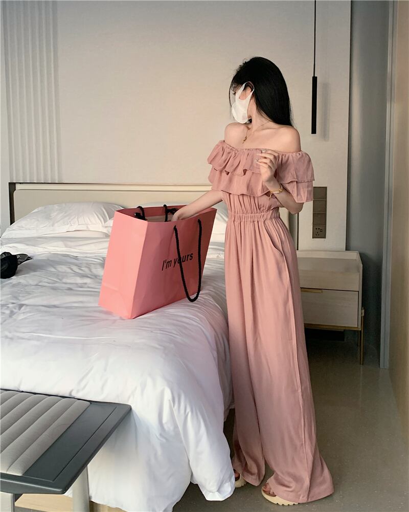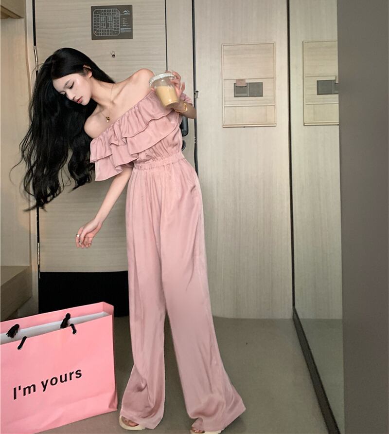 ジャンプスーツ オールインワン オータムハイウェストウェストルーズパンツ ピンク 秋物 10/5 秋冬 オータム ウインター ナチュラル mi4679069816328