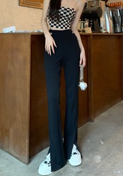 ブラックカジュアルパンツ オータムハイウェストスリムスリット 秋物 10/5 秋冬 オータム ウインター ナチュラル mi4673026286130