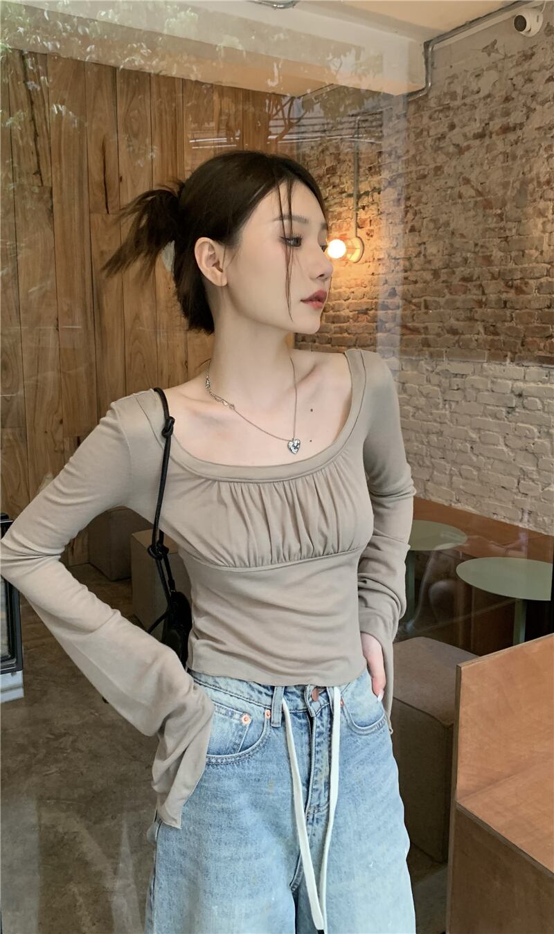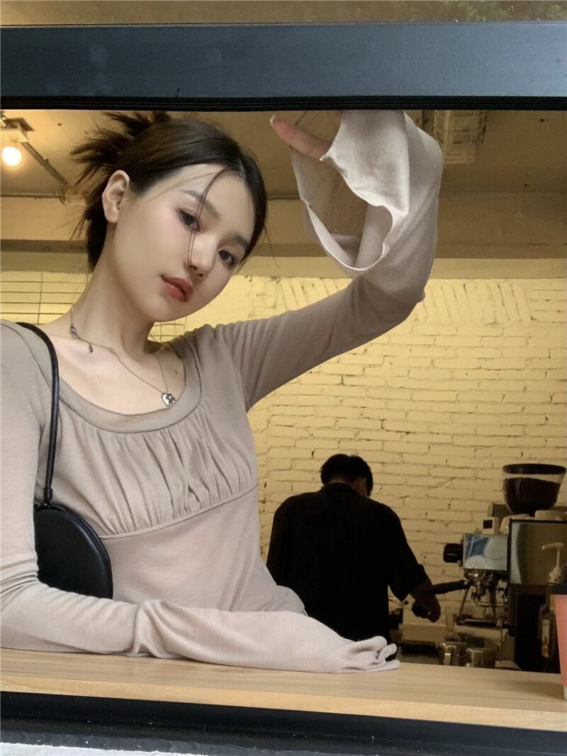 プリーツTシャツ オータムスリムフィットトップス ロング 秋物 スクウェア 10/5 秋冬 オータム ウインター ナチュラル mi4685404242236
