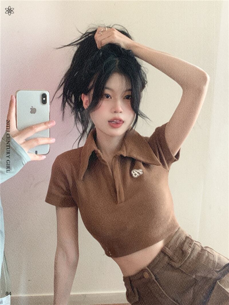カラーブラウンショートTシャツ サマートップス 夏物 10/5 秋冬 オータム ウインター ナチュラル mi4639806452549