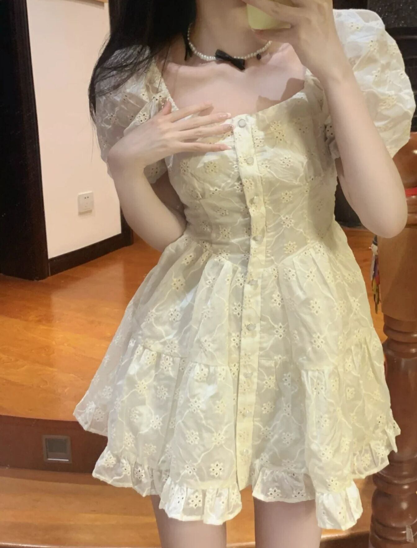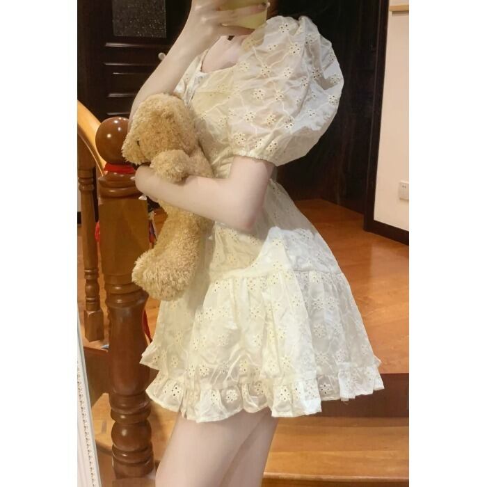ジャカードスリーブドレス サマーウェストスカート 大人ガーリー スウィート キュート カジュアル 夏物 パニエ ペチコート スクウェア 10/5 秋冬 オータム ウインター ナチュラル mi4622103290922