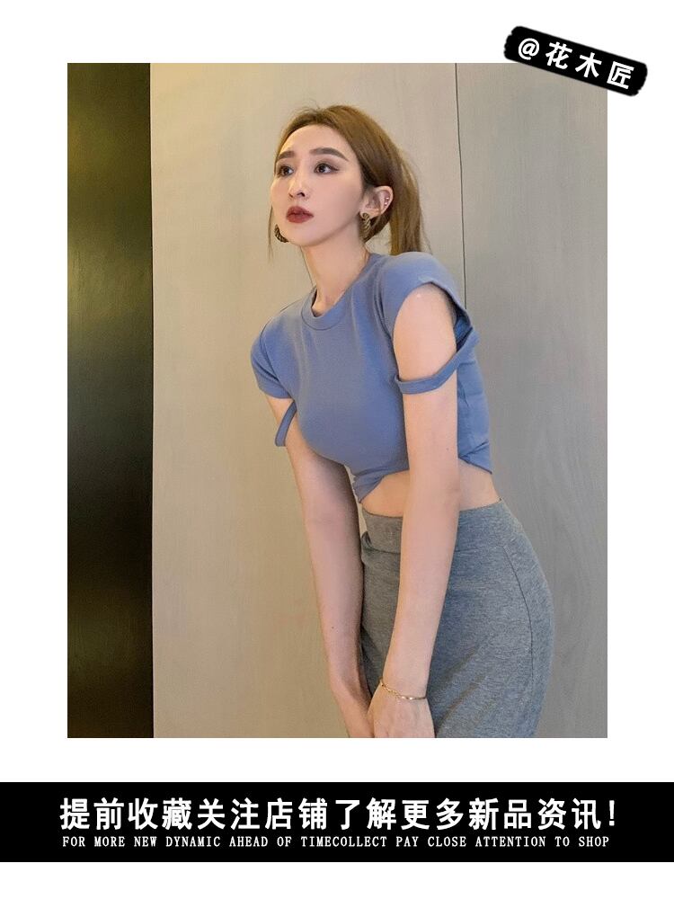 ショートTシャツ サマースリムフィット薄手ソリッド カラートップス 夏物 ソリッドカラー 10/5 秋冬 オータム ウインター ナチュラル mi4628562202090