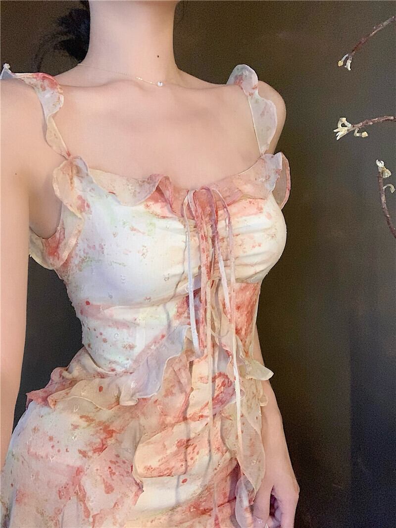 フローラルレースVネックドレス サマーウェストスカート 夏物 花柄 10/5 秋冬 オータム ウインター ナチュラル mi468912220493