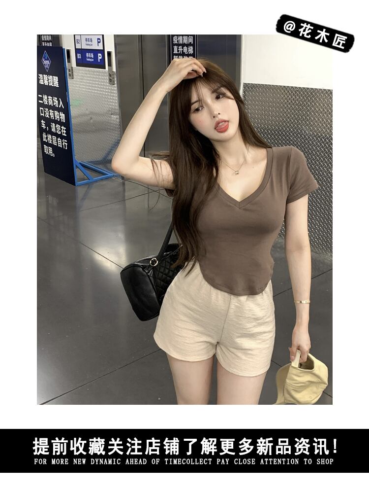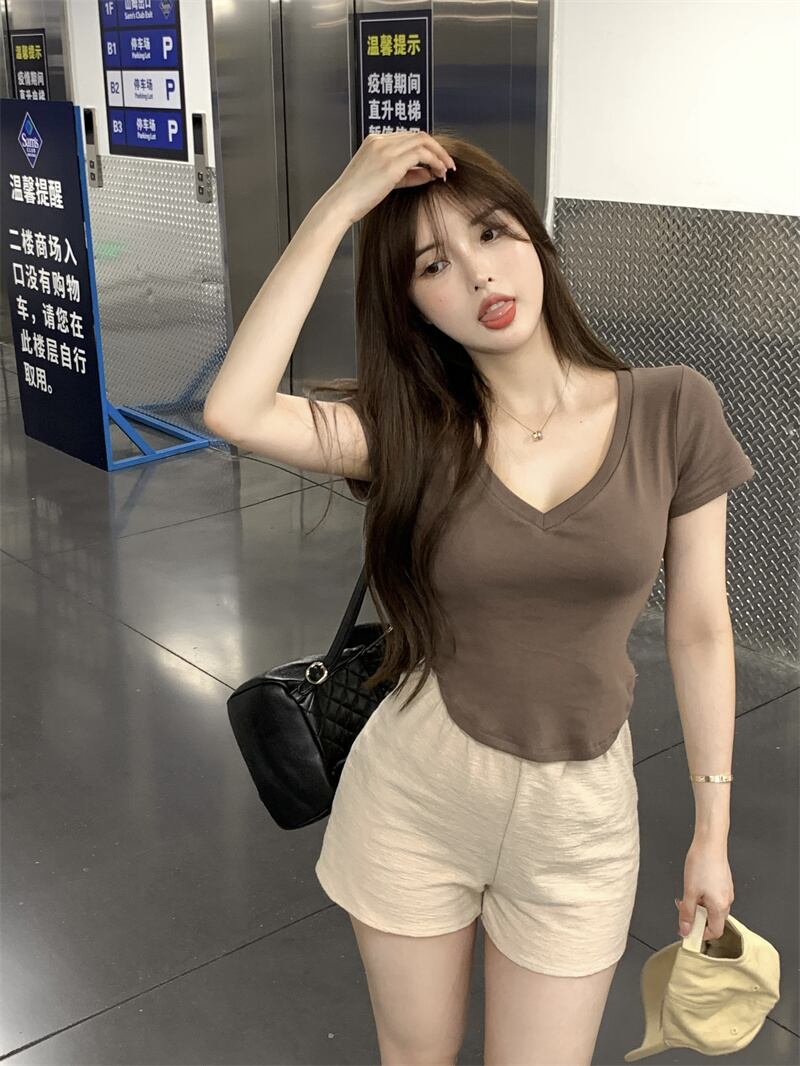 VネックショートTシャツ サマースタイルスリムトップス 夏物 10/5 秋冬 オータム ウインター ナチュラル mi4684879205396