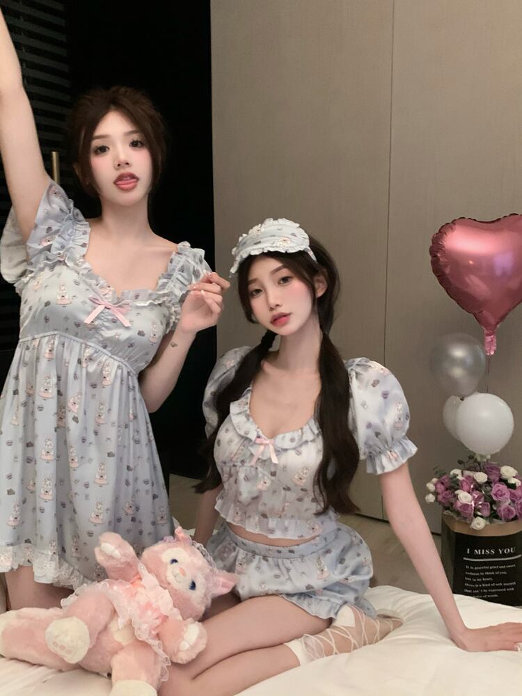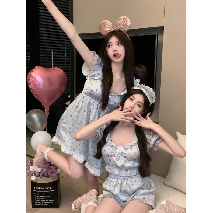 プリント柄サテンセット サマー 大人ガーリー スウィート キュート カジュアル 夏物 10/5 秋冬 オータム ウインター ナチュラル mi462062808927